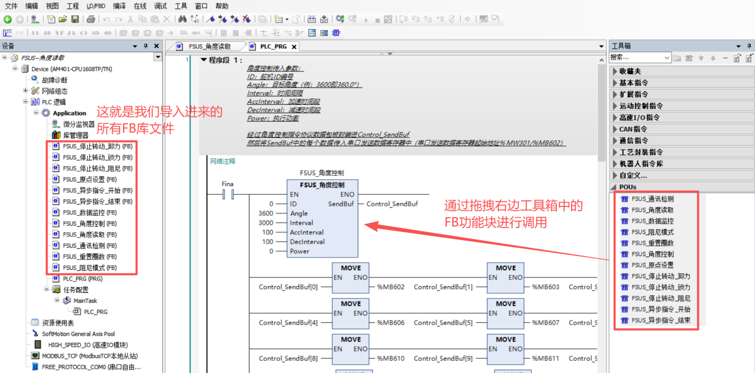 - After importing, drag function blocks from the toolbox and fill in required parameters.