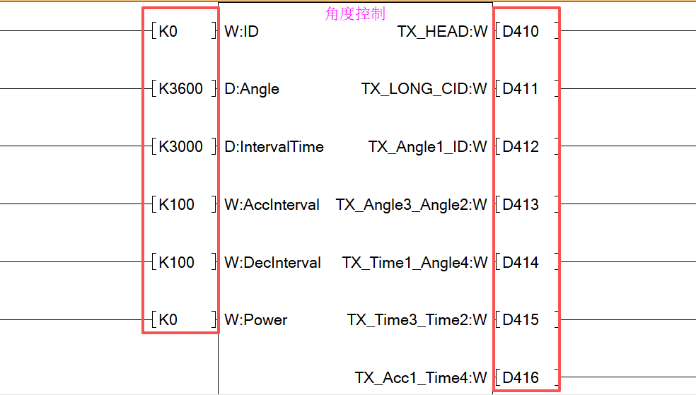 Use function blocks to convert the above data and store it in continuous registers, as shown below: D410, D411, and so on.