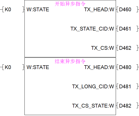 - Using the example above (servo ID 0 rotates to 360° in 3000ms), use MOV instructions to store high and low bytes into D410 in order; same rule applies to subsequent registers.