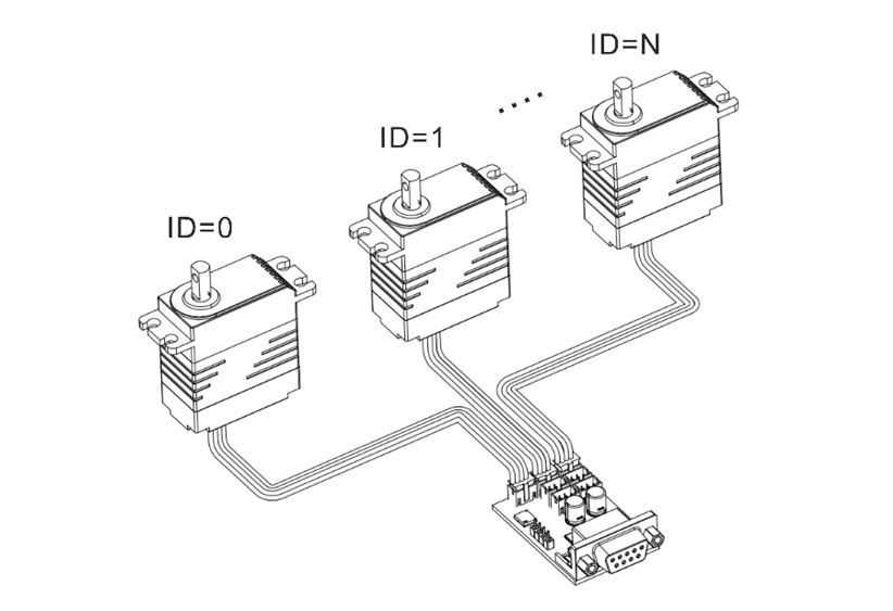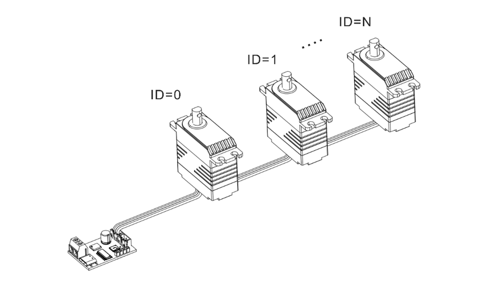 - Each servo matches the parameters in the command by its unique ID and only parses and responds to the control data associated with that ID.