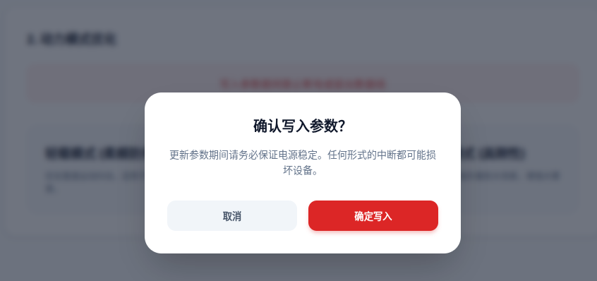 - A confirmation dialog appears: "Confirm writing parameters?"