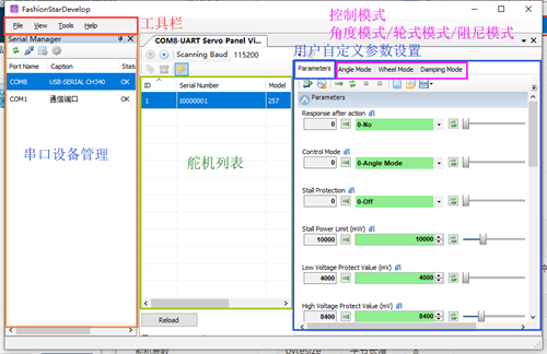 在FashionStar的官网,可以下载UART总线伺服舵机的调试软件。