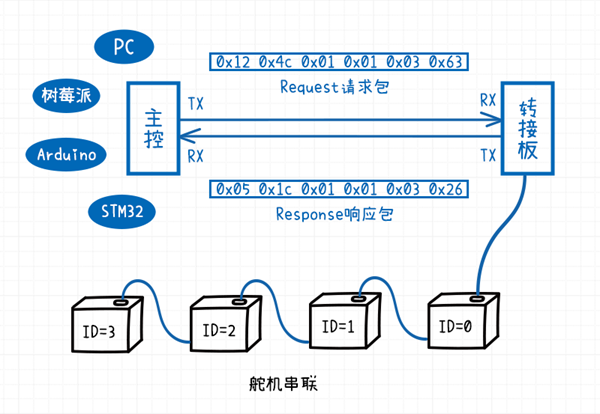 // STM32F103 PA9(Tx) <----> 总线伺服舵机转接板 Rx