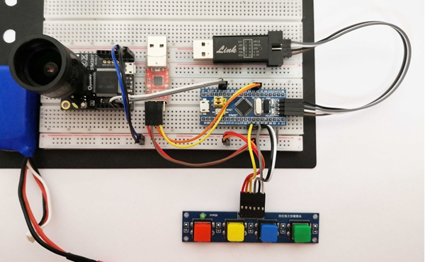 部分使用案例涉及到按键模块按键交互,需要用到四个按键分别调节偏航角与俯仰角的增加和减少。