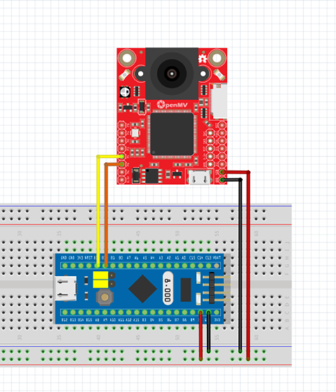 注意: STM32F103的5V不能接到OpenMV的3.3v上,会烧坏OpenMV。
