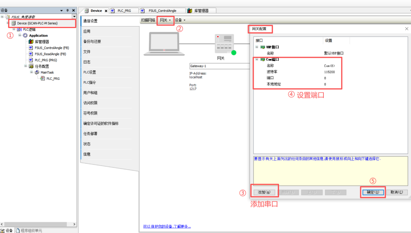 2.2 串口初始化(根据实际情况的PLC控制器进行指令块的更改)