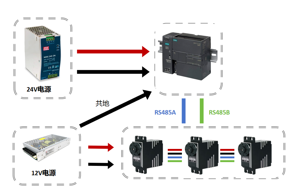 | PLC-B | RS485舵机-B |
