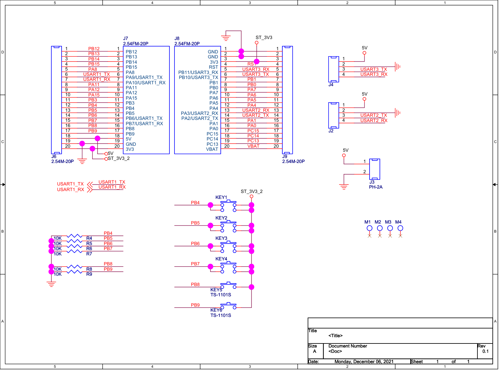 规格书 - STM32多合一主控板开发板 PTC-32 PTC-32 CNY99.00 点击购买 1. 产品特点 集成 TTL / USB 转换功能 板载 4+2 按键 OpenMV 专用接口 2. 规格参数 参数项 参数值 输入电压 6.0-8.7v 转换信号 半双工转全双工 TTL电平 3.3v | 5.0v 最大承载电流 20A 串口输出 1组 数据接口 MicroUSB 工作温度 -10 ~ 60℃ 保护功能 反接保护 舵机接口 PH2.0 × 2 3. 接口说明 引脚定义 4. 参考线路图 点击下载 本页内容对您有帮助吗? 感谢您的反馈! 感谢您的反馈!