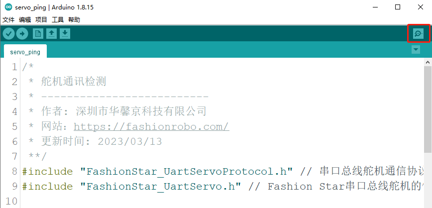 创建一个总线伺服舵机通信协议对象FSUS_Protocol,构造器里面需要填写Arduino与总线伺服舵机通信的波特率,默认为115200