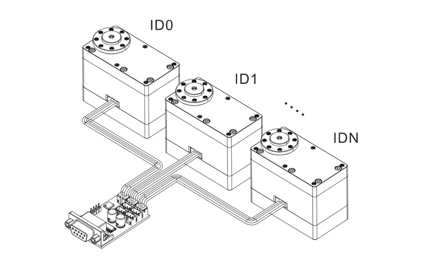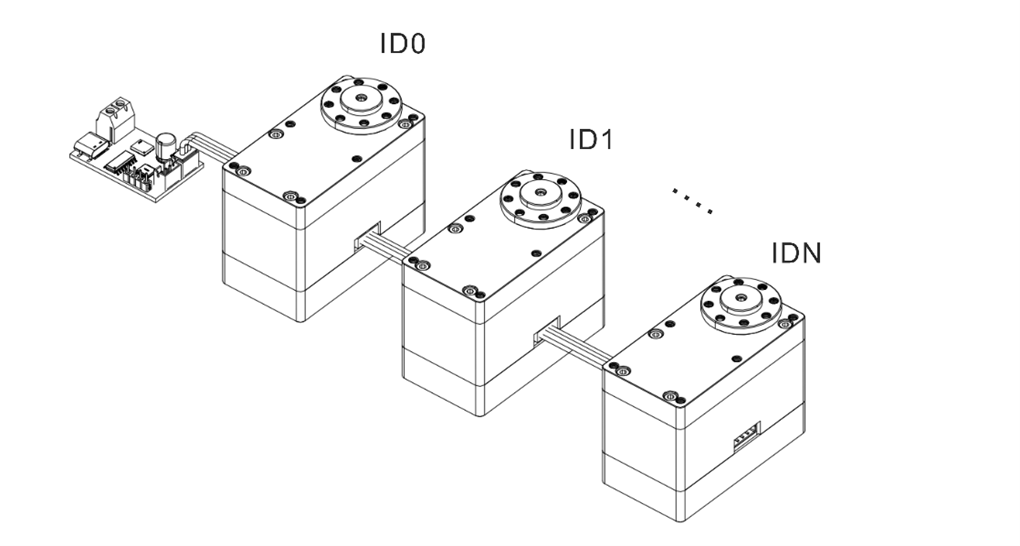 - 每个伺服舵机通过唯一的 ID 与指令内容中的参数进行匹配,仅解析并响应与自身 ID 相关的控制信息。