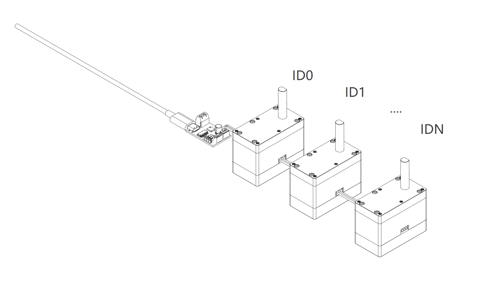 - 每个伺服舵机通过唯一的 ID 与指令内容中的参数进行匹配,仅解析并响应与自身 ID 相关的控制信息。